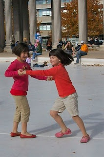 Between the speeches from various politicos and their flunkies the loud speakers would blare some catchy tune to keep the crowd up beat. The girls had a great time dancing together to the music and playing with the other kids. All the running around helped keep them warm and less whiny.